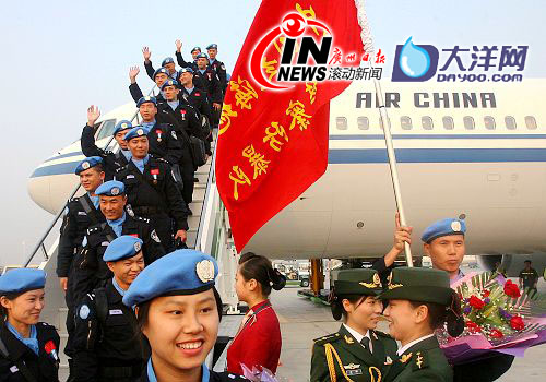 據(jù)了解,此次防暴隊由廣東邊防獨立組建,于今年4月奔赴海地執(zhí)行維和任務(wù),在執(zhí)行維和任務(wù)的8個月時間里,圓滿地完成了各項任務(wù),聯(lián)合國秘書長潘基文稱贊防暴隊是“維護世界和平的使者,中國的驕傲”,10月1日,防暴隊125名隊員被授予聯(lián)合國“和平勛章”,11月27日,聯(lián)海團總警監(jiān)頒發(fā)嘉獎令,使中國防暴隊成為任務(wù)區(qū)9支維和警察防暴隊中,唯一獲此殊榮的單位。(記者 李棟 通訊員 李國良、馬云龍、陳陽紅)