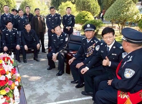 1月6日下午,孟建柱一行驅(qū)車專程來到德宏州盈江縣公安局,看望慰問全國公安系統(tǒng)二級英模、盈江縣公安局政委李興忠和全國特級優(yōu)秀人民警察、盈江縣公安局原禁毒大隊長祝啟華。看到英雄身上在戰(zhàn)斗中留下的傷痕,孟建柱關(guān)切地囑咐他們要注意保重身體。他撫摸著李興忠受傷的手動情地說,你們在禁毒斗爭中,英勇頑強,出生入死,不怕流血,不怕犧牲,為禁毒事業(yè)作出了重大貢獻,無愧于英雄的稱號,廣大公安民警要以你們?yōu)榘駱,永葆忠于黨、忠于祖國、忠于人民、忠于法律的政治本色,以黨的十七大精神為動力,在新的歷史起點上,把各項公安工作做得更好,為黨和人民再立新功。(徐燦 施曉焰 趙飛/圖)