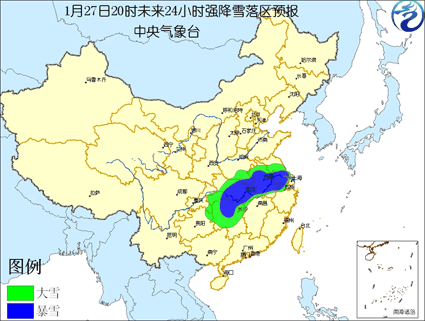 中新網(wǎng)1月27日電 中國(guó)中央氣象臺(tái)今天下午六點(diǎn)鐘發(fā)布最高等級(jí)的暴雪紅色警報(bào),顯示湘鄂豫皖蘇等地的部分地區(qū)有暴雪。