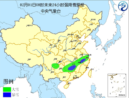 受冷暖空氣的共同影響,預計今天白天到夜間,湖南大部、貴州東南部、湖北東南部、安徽南部、江蘇西南部、浙江北部、江西北部以及四川東南部、云南東北部等地有中到大雪,其中,湖南中南部、安徽南部、江西北部、浙江西北部等地的局地有暴雪。