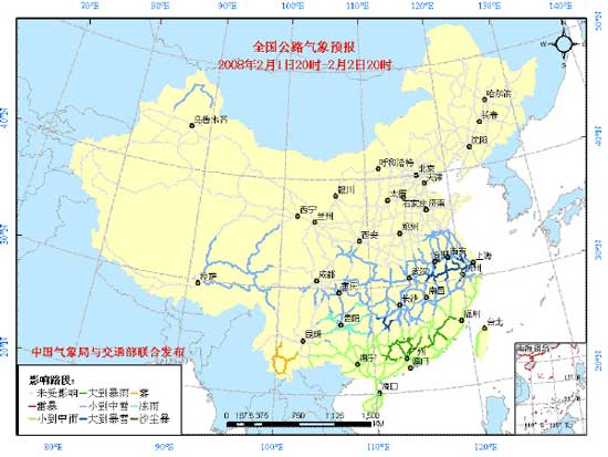 全國(guó)公路氣象預(yù)報(bào)(2008年2月1日20時(shí)-2月2日20時(shí))