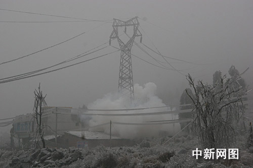 由于天氣持續(xù)惡劣,當(dāng)?shù)毓╇姴块T現(xiàn)加派人員,日夜巡查,一但發(fā)現(xiàn)有電線垂落,危及京珠北通車安全,馬上組織處理。這是首次在廣東京珠北韶關(guān)樂昌境內(nèi)路段采用炸倒電線鐵塔的方法來排除險情。(完)