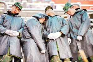 為了維護(hù)好退票窗的秩序,工作人員不停地將進(jìn)到退票點(diǎn)內(nèi)逗留的守票族請(qǐng)到外面。