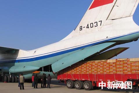據(jù)介紹,此次運(yùn)送的救災(zāi)物資是由石家莊藁城市燃亮蠟燭廠加班生產(chǎn)的,共計約120噸,是由商務(wù)部緊急組織、河北省商務(wù)廳協(xié)助辦理的,石家莊機(jī)場負(fù)責(zé)物資裝卸及相關(guān)保障工作。承擔(dān)運(yùn)送物資的三架伊爾—76運(yùn)輸機(jī),一架為中國聯(lián)航,另兩架為中國空軍所屬。