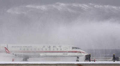 昨日下午2時30分,上航一架客機(jī)在浦東機(jī)場第三跑道著陸時突然“著火”,不到半小時融合,大火被撲滅。這是在該機(jī)場舉行的航空應(yīng)急救援演練中的一幕。上海機(jī)場集團(tuán)表示,無論發(fā)生何種緊急狀況,險情都將在半小時內(nèi)被控制。