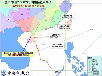 中新網(wǎng)4月18日電 據(jù)問天網(wǎng)消息,中央氣象臺今天早晨六點(diǎn)鐘發(fā)布臺風(fēng)橙色緊急警報:今年第1號臺風(fēng)浣熊(NEOGURI)的中心今天早晨5點(diǎn)鐘位于海南省萬寧市東南偏南方向大約180公里的南海中部海面上,就是北緯17.5度,東經(jīng)111.4 度,中心附近最大風(fēng)力有13級(38米/秒)。