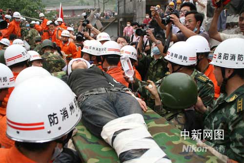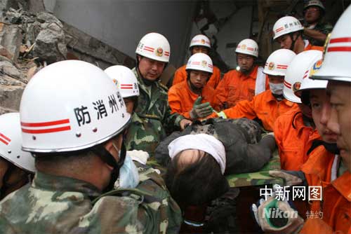 獲救者卞剛芬今年三十一歲,是鎣華實(shí)業(yè)公司的一名服務(wù)員,從被困至獲救,已經(jīng)過了整整一百二十四個(gè)小時(shí),抗震救災(zāi)突擊隊(duì)是在十六日晚成功救出被困一百0四小時(shí)的青年工人李青松后,在一座五層樓房倒塌的廢墟中發(fā)現(xiàn)她的。