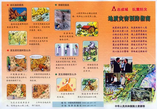 中新網(wǎng)5月18日電 國土資源部連夜趕制《地質(zhì)災(zāi)害預(yù)防指南》折頁100萬份。第一批(20萬份)將于今日運往四川災(zāi)區(qū)。廣泛普及這種簡單實用的地質(zhì)災(zāi)害避防常識,實行科學抗災(zāi)救災(zāi),可以避免和減少傷亡損失。