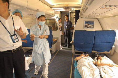 民航局組織航空公司改裝飛機向外轉運傷員(圖)