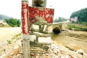 昨日,記者沿綿陽市通口河溯江而上,直奔唐家山堰塞湖方向。從江油到北川的公路上,路旁的碎石與收拾細軟遷移的災民形成一道特別的景象。村莊的田地里,綠油油的莊稼已經成熟,但是位于北川香泉鄉(xiāng)黃江村的村民們卻無心收獲,因為洪水的威脅正在來臨。村民王紅梅站在海拔900多米的山上,只能遙望山下自己不到一畝的田地。這個村莊是幸運的,離北川縣城有一個多小時車程的這里屬于石灰?guī)r地區(qū),地震只是震塌了一小部分房子,沒有造成多少人員傷亡。然而,地震帶來的次生災害正逐步威脅著村里1200多人的生命,村民也開始把家中重要的物品轉移到更高的山上。