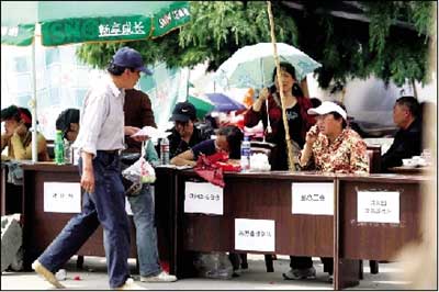 除政府部門外,法院和檢察院也在廣場上擺出攤子接待市民?h法院一位女副庭長說,受地震影響,法院無法開庭審理各種案件,原本在地震后的一段時間里應(yīng)該開庭審理的案件當(dāng)事人可能會對案件無所適從。法院接待處就是為了向市民做法律方面的解釋工作。她透露,昨天縣法院要求民事、刑事及立案庭在近兩天內(nèi)開始搭建臨時法庭,并盡快恢復(fù)開庭審理案件。她說,按法律規(guī)定,遇地震等重大災(zāi)害,法院可以中止審理各種案件,但截至目前,該院沒有一起案件被中止。法院已開始清理所有積案,遇有當(dāng)事人在外地?zé)o法返回茂縣,或因重建家園而無法參加庭審的情況,法院將與其取得聯(lián)系,辦理延期開庭手續(xù)。