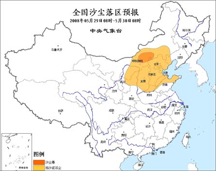 中新網5月29日電 中央氣象臺今天早晨六點鐘繼續(xù)發(fā)布沙塵天氣預報: