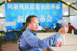 侍。哼@里屬于震中地帶。地震發(fā)生后,我們迅速啟動(dòng)應(yīng)急預(yù)案,我?guī)е慌刹,拿了一部海事衛(wèi)星電話,翻山越嶺,于5月13日中午到達(dá)這里,在廢墟上成立了阿壩抗震救災(zāi)指揮部。目前,州委也移到這里辦公。