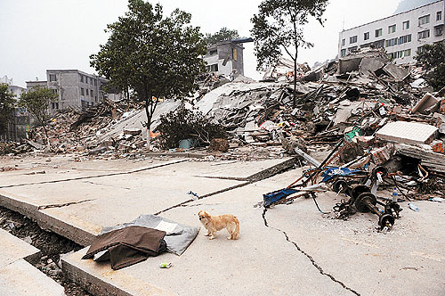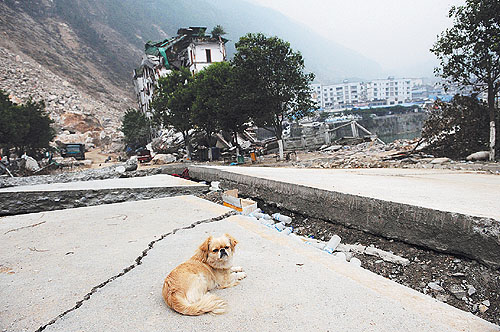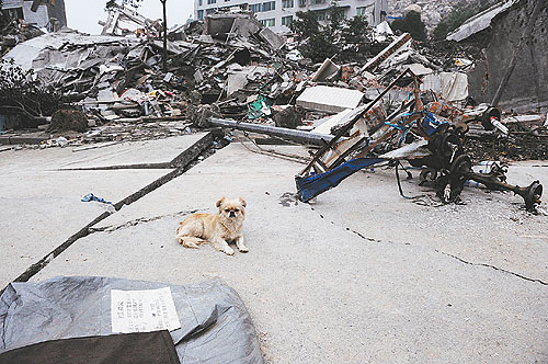 北川已不可能在原址上重建。那一塊塊殘?jiān)珨啾冢约皬U墟下一具具永遠(yuǎn)合不上眼睛的亡魂,將成為人類(lèi)災(zāi)難史上永不磨滅的記憶。那樣的記憶,將會(huì)由人類(lèi)來(lái)共同分擔(dān)。而我最痛悔的是,沒(méi)能親自抱一抱那條小狗,我的相機(jī)里也沒(méi)留下一張我與它的合影。