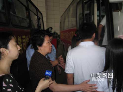 湖北省副省長張岱梨(左二)送災(zāi)區(qū)學(xué)生上車。作者:艾啟平