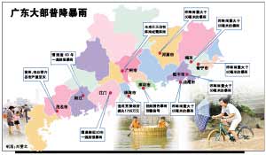 本報(bào)訊 (記者黃建華 通訊員粵水婷)記者從廣東省防總獲悉,特大暴雨使粵西地區(qū)江河水位急劇上漲,并先后出現(xiàn)超過或接近警戒線的洪水過程。其中: