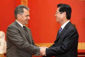 中國駐俄羅斯大使劉古昌與俄緊急救災(zāi)部部長紹伊古