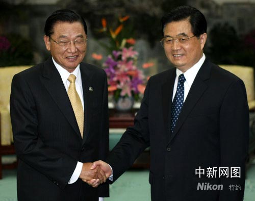 中新網(wǎng)北京6月13日電 中共中央總書記胡錦濤13日下午16時30分許在釣魚臺國賓館會見臺灣海基會董事長江丙坤和;鶗韴F主要成員。