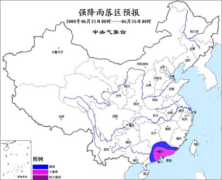 預(yù)計今天白天到夜間,廣東大部、福建東南部、江西南部、湖南東南部有暴雨,廣東中東部局部地區(qū)有大暴雨或特大暴雨。