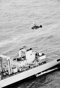 時近中午,反潛空中突擊群打擊“潛艇”戰(zhàn)斗如期打響。海域內波濤滾滾,反潛直升機穿行在藍天碧海之間。