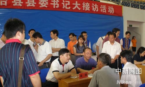 公開(kāi)接訪從上午八點(diǎn)三十分開(kāi)始,到十一點(diǎn)三十分結(jié)束。接訪現(xiàn)場(chǎng)等待的群眾共有三百多人,共受理了六十五人的接訪材料,其中該縣委書(shū)記梁健親自受理了三十多件。