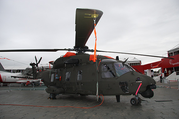純軍用型筆者在現(xiàn)場只看到了一架丹麥陸軍最新購買的EH-101 Mk512默林直升機。該機的機鼻向上方翹著,看起來很可愛。