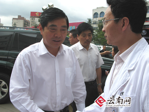 云南省委常委、昆明市委書記仇和第一時間趕到醫(yī)院看望受傷群眾。 來源:云南網(wǎng)