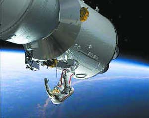 趙長喜說,在氣閘艙外圍專門有一個護欄扶手,出艙的航天員可以抓住扶手到達想到的預(yù)定區(qū)域。留在艙內(nèi)的航天員可以起輔助作用,萬一有什么意外可以起到幫忙的作用。另外,航天員和飛船之間通過電臍帶提供通信或者能源,也起到一定的安全保障作用,電臍帶里面有很細的鋼纜,保證航天員不會和飛船分離,確保出艙航天員的安全。