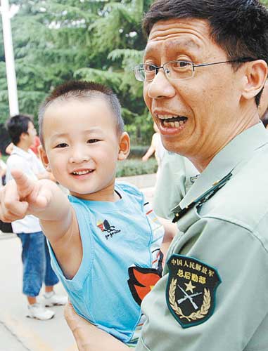 ·“敬禮娃娃”郎錚:“這個(gè)親我的爺爺是誰(shuí)”(圖)