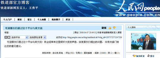 鐵道部新聞發(fā)言人王勇平的博客
