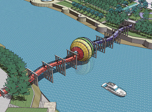 該市市政公用局周科長介紹,分界線上的標(biāo)志物將與淮安一歷史遺存老橋墩(規(guī)劃建設(shè)的“紅橋”)相融合一并建設(shè),該橋始建于上世紀(jì)三十年代,曾見證過淮安的滄桑歷史,分界線上的標(biāo)志物與具有一定歷史意義的老橋墩相融合,更增添了城市特色,也深化了文化內(nèi)涵。標(biāo)志物的“長相”是一個球形,位于紅橋中間位置,亦是河道中心線位置。以球形為母體,分為南北兩半球,北側(cè)為漸變冷色調(diào),南側(cè)為漸變暖色調(diào),喻意地球上的南北氣候特征。行人可從球中穿過,感受跨越南北氣候帶的感觀變化!(沈國良 井建國 朱鼎兆)