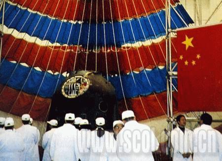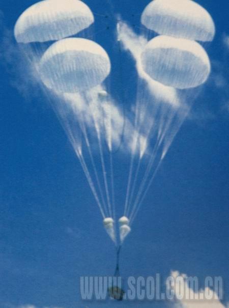 “神七”返回艙回收傘采用異型設計,由紅白兩種顏色組成,傘兩邊的強力要比中間高。屆時,96根傘繩撐起回收傘,“神七”飛船返回艙將借助回收傘以完美的姿勢落地。