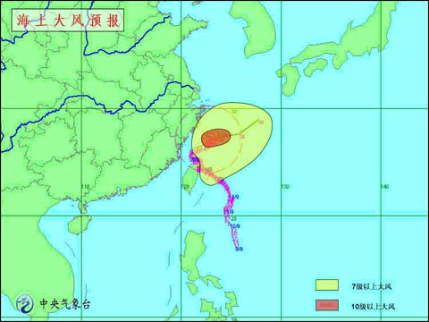 預(yù)計(jì),今天白天到夜間,受強(qiáng)熱帶風(fēng)暴“森拉克”影響,東海大部海域、臺(tái)灣以東洋面將有7-8級(jí)大風(fēng),“森拉克”中心經(jīng)過的附近海域的風(fēng)力可達(dá)9-10級(jí)。