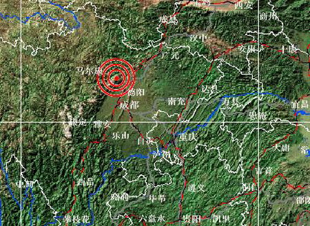 據(jù)地震臺網(wǎng)測定,北京時間2008年09月24日03時54分,在四川綿竹市(北緯31.6,東經(jīng)104.0) 發(fā)生3.9級地震,成都市區(qū)有明顯震感。