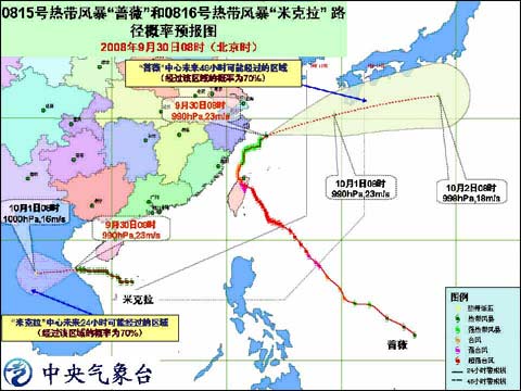 熱帶風(fēng)暴“薔薇”與“米克拉”路徑概率預(yù)報圖