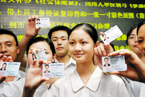 農(nóng)民工喜領(lǐng)社會(huì)保障卡。通訊員 祝云才 攝