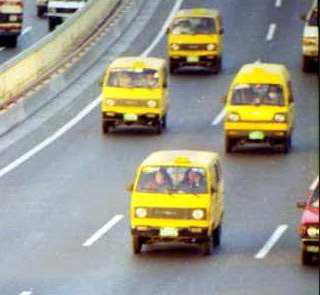 “黃蟲”、“面的”,是當(dāng)年京津等地對(duì)黃色大發(fā)出租車的戲稱。自1984年天津汽車制造廠從日本引進(jìn)技術(shù)生產(chǎn)出第一輛大發(fā)汽車后,短短幾年時(shí)間,這種結(jié)構(gòu)簡(jiǎn)單、既能拉貨又能拉人的小面包車,迅速成為中國(guó)北方諸多城市的一道風(fēng)景,京津等城市,馬路上“遍地黃大發(fā)”。