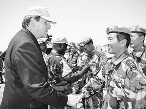 羅伊高度贊賞了中國為世界和平所做出的突出貢獻,積極肯定了中國赴達爾富爾維和部隊的出色表現(xiàn)及關(guān)鍵作用,并對中國工兵為該地區(qū)和平重建做出的貢獻表示感謝。他表示,中國工兵分隊能夠參加達爾富爾維和行動,他感到非常驕傲和自豪,他將把達爾富爾日新月異的變化上報聯(lián)合國秘書長。