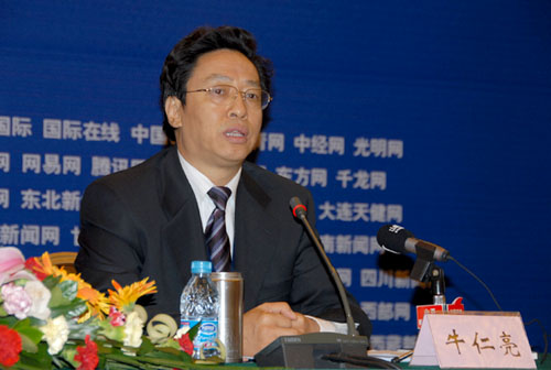 山西省副省長(zhǎng)牛仁亮在第三屆網(wǎng)絡(luò)媒體山西行開幕式上介紹山西省情。