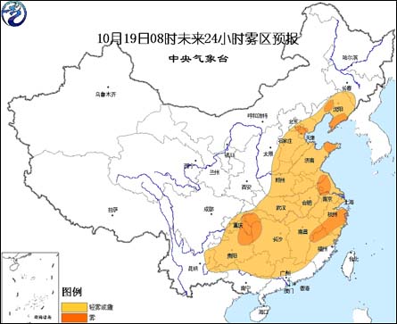中新網10月19日電 據中國氣象局網站消息,中央氣象臺10月19日6時繼續(xù)發(fā)布大霧預報: