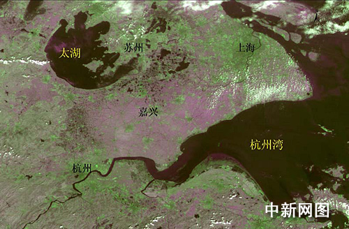 “環(huán)境減災”A、B星拍攝并下傳的長三角地區(qū)影像圖。