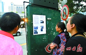 火車(chē)東站旁貼出的一份懸賞公告。駱昌威攝