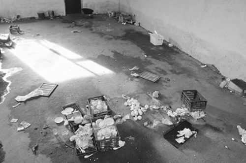 昨天下午,記者再次來(lái)到長(zhǎng)春市劉福屯的這家餐具消毒廠,看到餐具消毒廠的大門緊鎖,記者透過(guò)窗戶看到,消毒廠廠房?jī)?nèi)凌亂不堪,餐巾紙、殘羹剩飯、還有一些帶有瑕疵的餐具擺放在廠房?jī)?nèi)的不同角落。