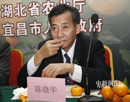 中新社武漢十一月一日電 (記者 徐金波)出席中國武漢農(nóng)業(yè)博覽會的國家農(nóng)業(yè)部副部長陳曉華一日甘當(dāng)柑橘“代言”人,除現(xiàn)場品嘗中國四大柑橘產(chǎn)地之一的宜昌柑橘外,還歷數(shù)其好,并對此前媒體特別是手機短信散布的“柑橘生蛆”不實信息予以駁斥。此舉大幅提升了市場消費信心,當(dāng)日來自全國十多個省份的經(jīng)銷商與湖北宜昌市簽訂了二十三萬噸的銷售協(xié)議。