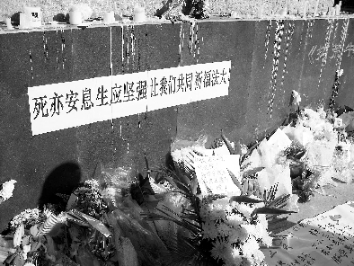 “死亦安息生應堅強讓我們共同祈福法大”。10月31日中午,中國政法大學昌平校區(qū)拓荒牛雕塑的基座上,一條白底黑字的條幅在陽光下冷冷地注視著過往的每一個人。雕塑前的地面上,幾排黃色的、白色的菊花在秋風中靜靜綻放。