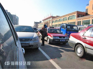 在?谑谐菂^(qū)主要街道口,每當(dāng)紅燈亮起車輛停下之際,就會(huì)有一些人竄到車流當(dāng)中,他(她)們用手中拿著的碗或托著的缽,逐車挨個(gè)敲打著車窗玻璃,目的是為了討要鈔票。