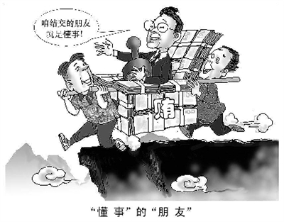 “跟屁蟲”,是個(gè)很不雅的詞,指老跟在別人背后的人。詞典上說,此語“含厭惡意”。但是一些領(lǐng)導(dǎo)干部,對(duì)“跟屁蟲”,尤其是請(qǐng)自己關(guān)照幫忙、向自己進(jìn)貢送錢的老板,卻絲毫沒有厭惡的意思,相反,把他們當(dāng)成朋友,喜歡這樣的“跟屁蟲”在自己身邊吹喇叭抬轎子,經(jīng)常拜訪自己,對(duì)自己“表示感謝”。領(lǐng)導(dǎo)干部要慎重對(duì)待朋友交往,擇善而交,恐怕首先要遠(yuǎn)離“跟屁蟲”、提防“跟屁蟲”,否則你就會(huì)成為下一個(gè)王建國(guó)。