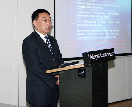 陳雷簡要介紹了中國的防洪抗旱與減災情況。中國地勢西高東低,東西部、南北方的自然地理條件差異很大。中國的河流總長度約為42萬公里,流域面積超過100平方公里的河流有5萬多條,其中長江、黃河、淮河、海河、珠江、松花江和遼河被稱為"七大江河"。