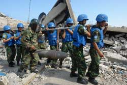 作為負(fù)責(zé)任的大國(guó),中國(guó)積極參加聯(lián)合國(guó)維和行動(dòng),派出多批醫(yī)療、工兵和運(yùn)輸分隊(duì)執(zhí)行救死扶傷、排除雷患和運(yùn)輸物資的任務(wù),受到廣泛贊譽(yù)。