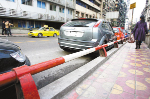 渝中區(qū)較場(chǎng)口附近新增設(shè)的道路防撞護(hù)欄。 記者 羅偉 攝